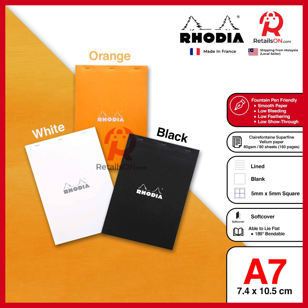 Stapled pads, noting but stapled pads! 80g superfine vellum paper. 'Avant-gardiste' from the start in 1934, the Rhodia Orange pad, this trans-generational product, has come to symbolize the quintessential high-quality pad. Contemporary versions are still loyal to the founding features of the original ultra-simple, ultra-practical stapled notepad.
